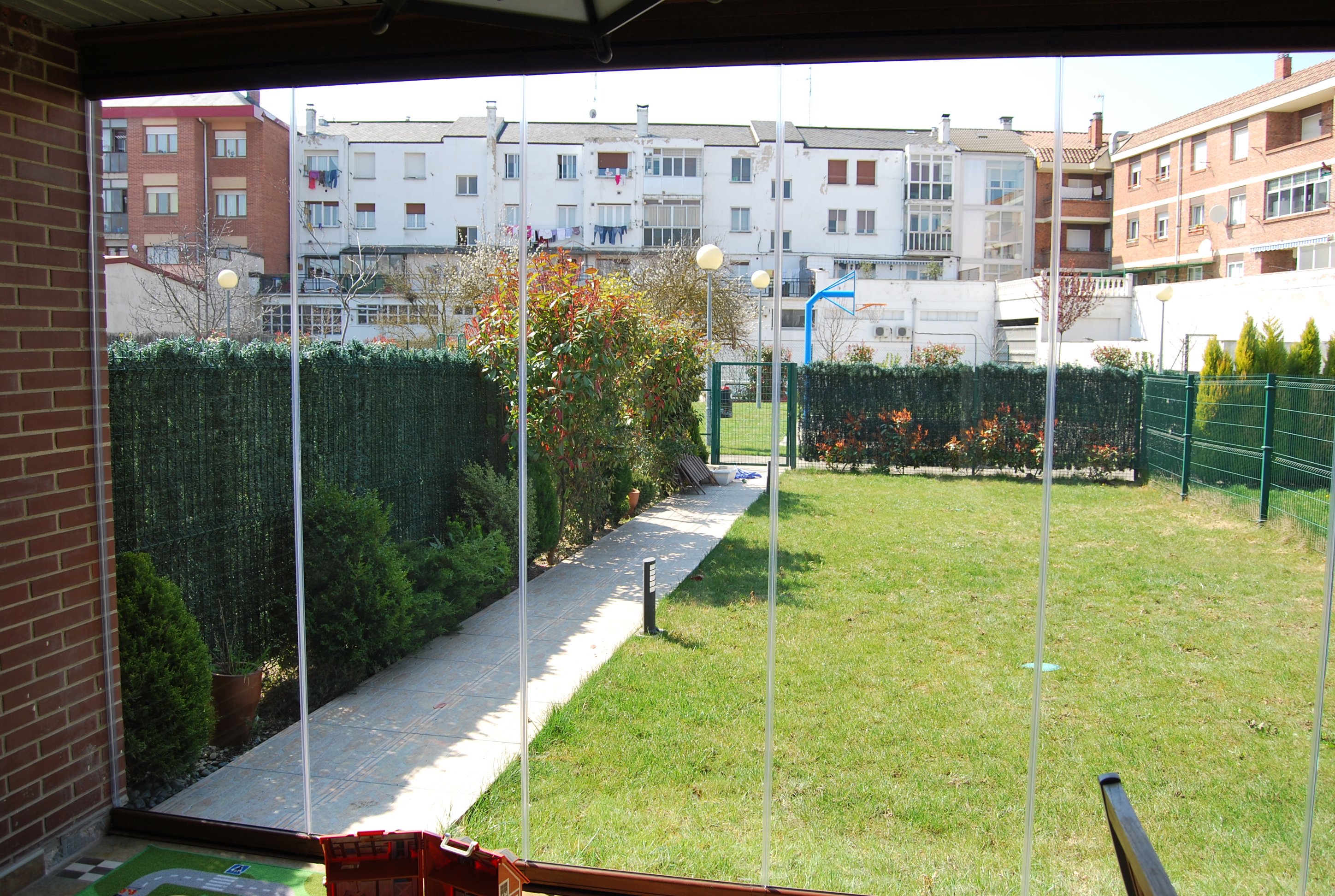 Este trabajo ha sido realizado en Vitoria en la zona de Lakua. El cliente quería tener la posibilidad de utilizar del porche también en invierno de forma que necesitaba algo que le permitiera cerrarlo y abrirlo para disfrutarlo todo el año. Como ya conocía el producto nos pidió directamente una cortina de vidrio.